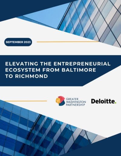 This report outlines opportunities to achieve a thriving entrepreneurial ecosystem from Baltimore to Richmond that is competitive, diverse, and inclusive and that creates jobs, attracts talent, spurs innovation, and grows the regional economy.